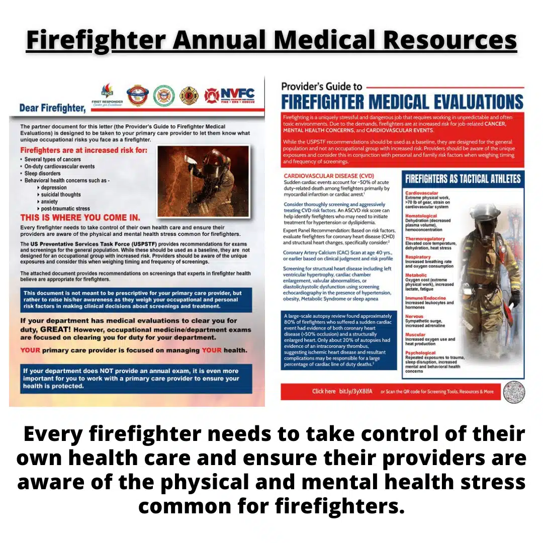 Here are some great resources to provide to your physician to help them understand the risks and tests firefighters require.  Please print these out and take them to your next physical.
